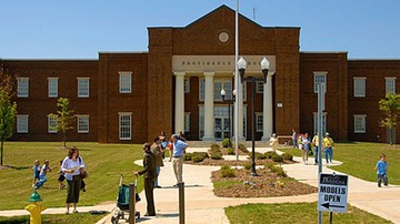 The school board also objected to our call to build a two-story school. I pointed those same schools they had been running the longest, most of which were two stories. They said “people don’t like to climb stairs,” but their own administrative offices were located in the original Huntsville High School, itself a two-story building of which most of the administrators were clearly fond. Eventually, we worked past these hurdles. Here’s how the Providence school sits on its site: